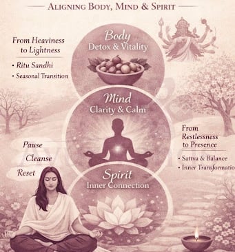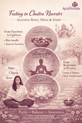 Discover how fasting during Chaitra Navratri aligns body, mind, and spirit. Learn Ayurvedic insights on seasonal detox, Ritu Sandhi, and mindful nourishment for holistic wellness.